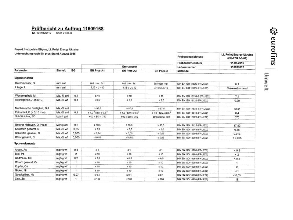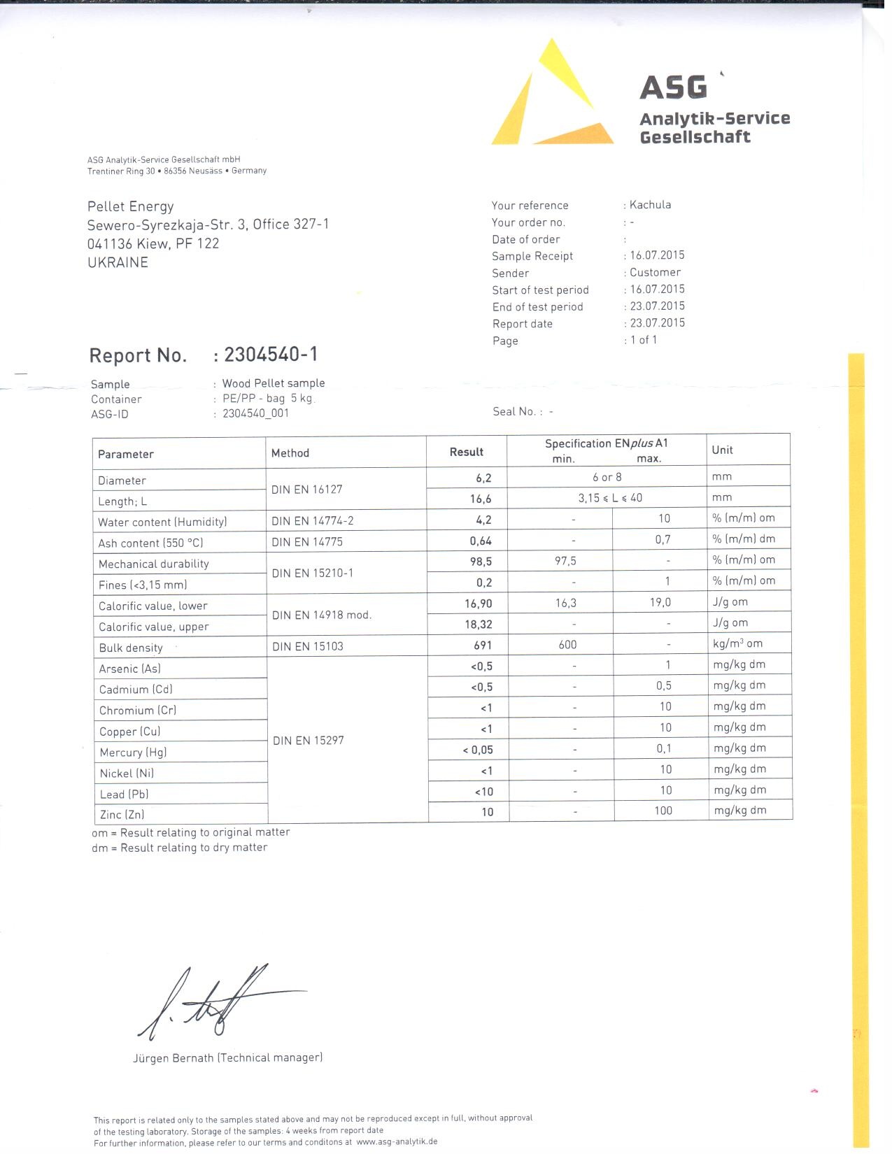 Висока якість нашої гранули гарантується висококласним німецьким обладнанням, технологією контролю та збору сировини, досвідченим персоналом заводу, а також внутрішніми стандартами і процедурами контролю якості при виробництві відповідно до стандарту EN 14961-2
